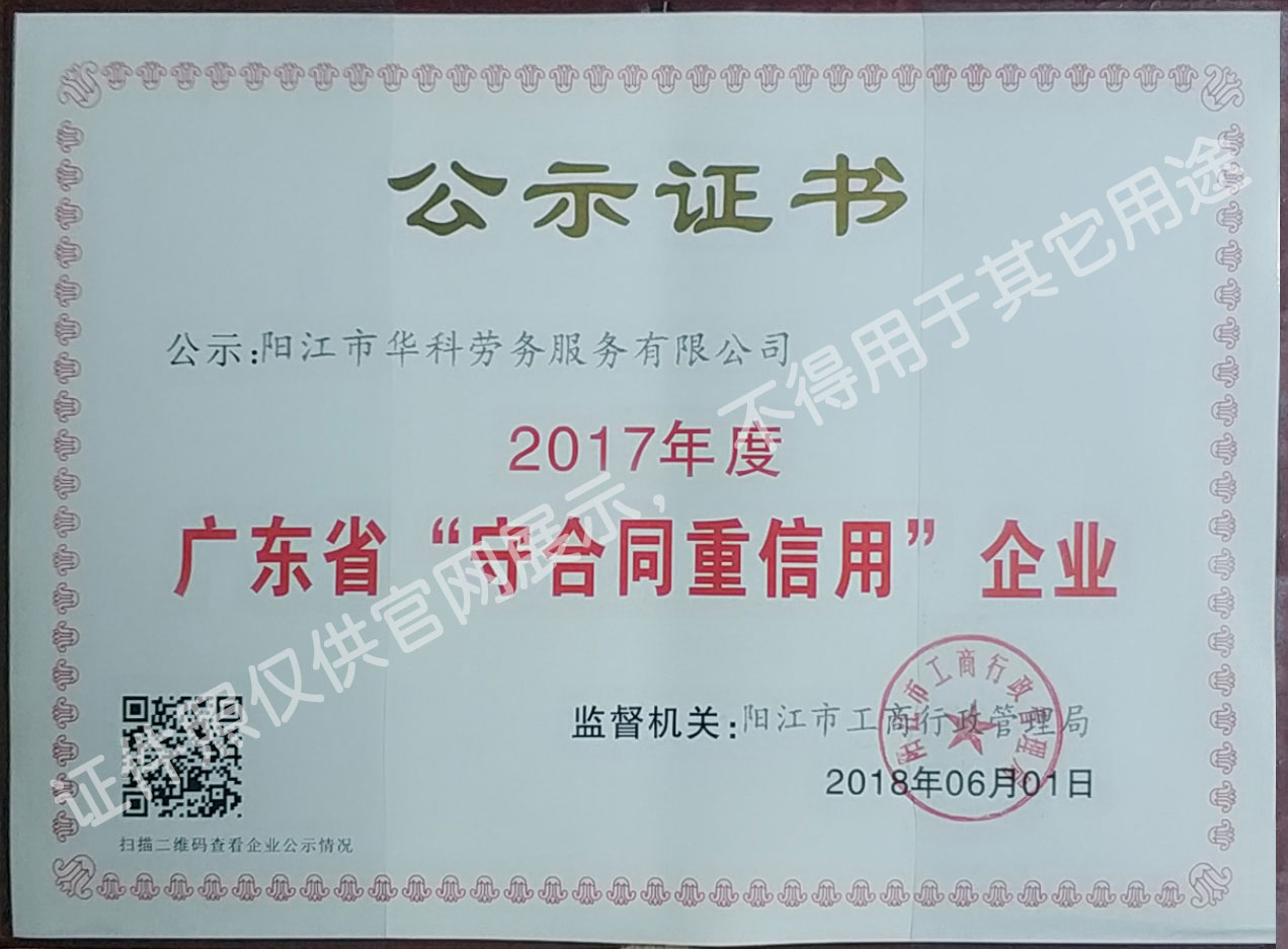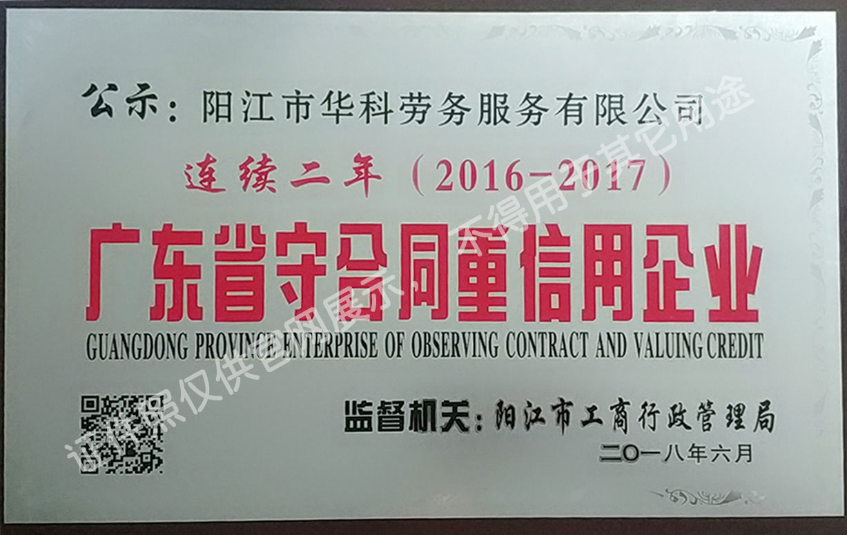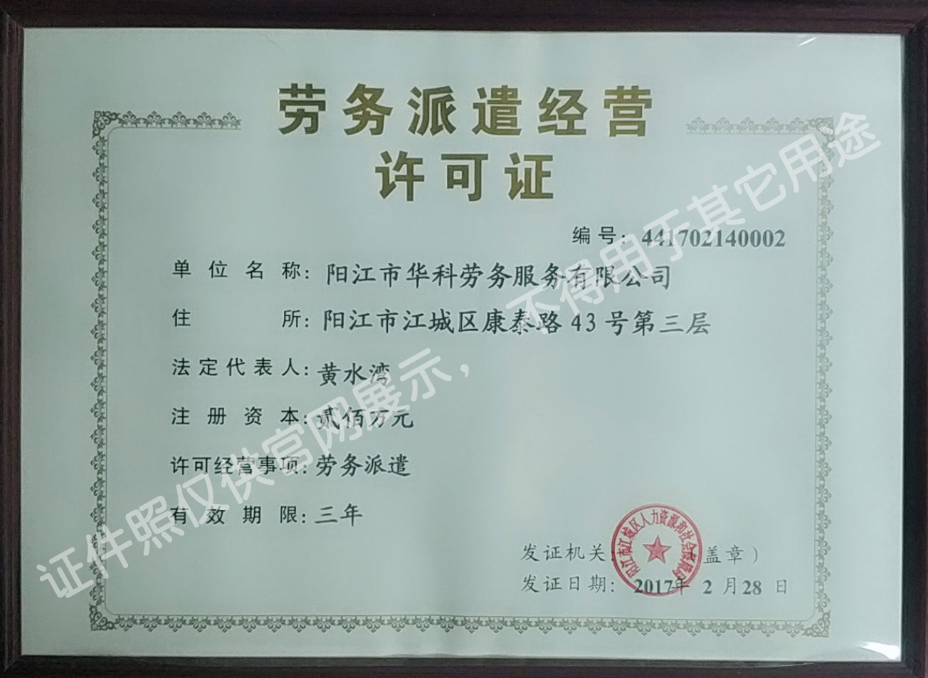 華科勞務服務有限公司是專業(yè)從事人事代理、勞務租賃、人力派遣及管理的綜合性服務機構(gòu),是首批獲得廣東省人力資源廳、陽江市勞動和社會保障局頒發(fā)人力資源許可證的合法單位。公司秉承“誠信務實、專業(yè)熱情、滿意第一、服務社群”的經(jīng)營理念,在勞務派遣業(yè)務的基礎上,更致力于合同制工人(臨時工、實習生、假期工)方向發(fā)展,為用工企業(yè)及時輸送合格的各類人才,合理調(diào)配人力資源的有序流動,幫助求職者尋求更加滿意的就業(yè)渠道和崗位,切實維護求職者的合法權(quán)益。